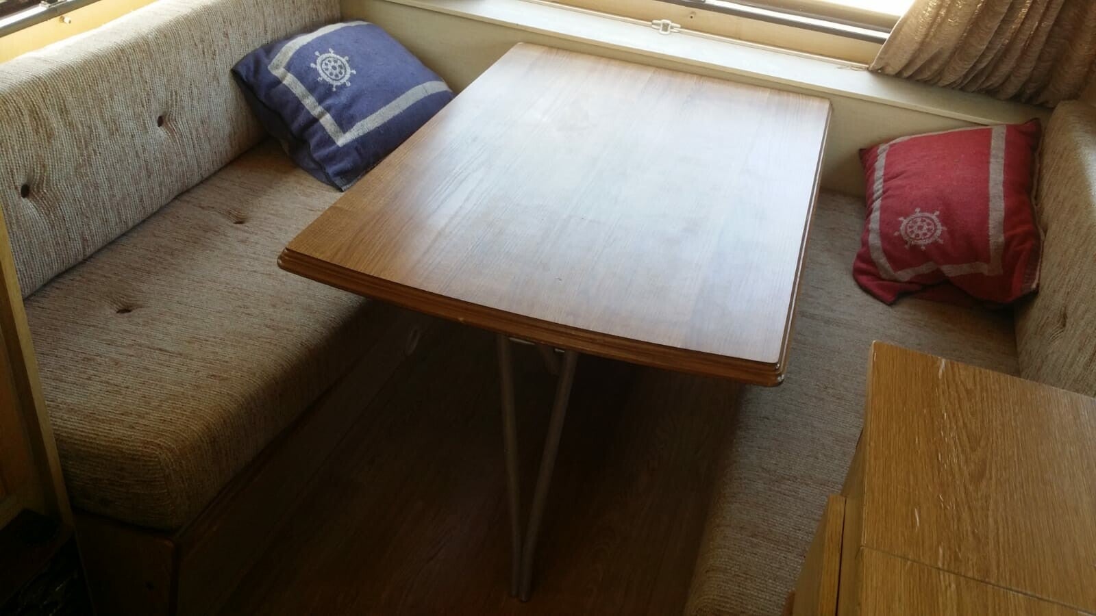 Voorin treinzit c.q. groot 2 persoonsbed.