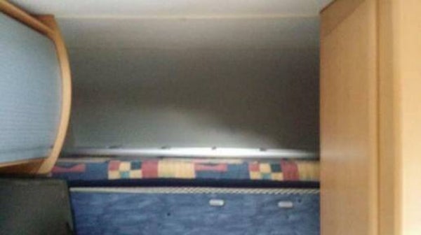 Achterin stapelbed c.q. garage, onderste bed kan naar boven geklapt worden.