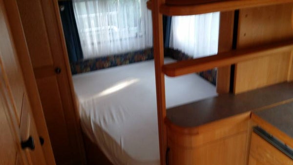 Voorin rondzit c.q. 2 persoonsbed ingeklapt.