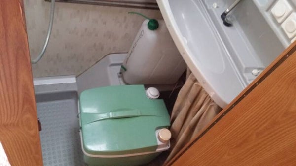 Midden douche met chemisch toilet.