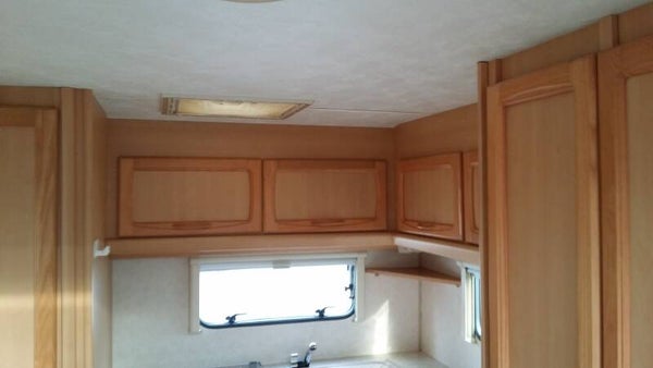 Achterin keuken met 3 pits gasstel, spoelbak en koel/vries kast.