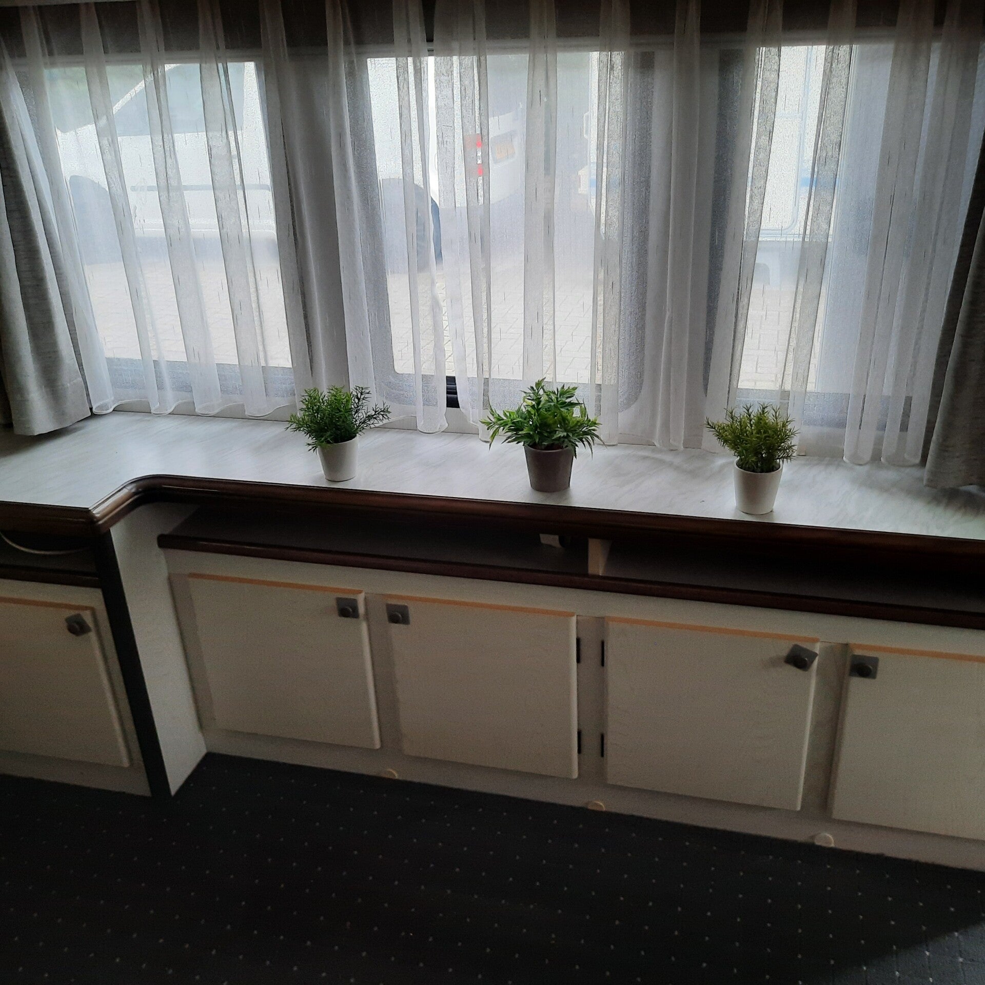 Zithoek is weg, staan nu 2 goede stoelen met tafeltje.