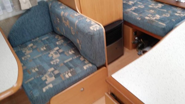 Achter 4 persoons treinzit of 2 persoons bed.